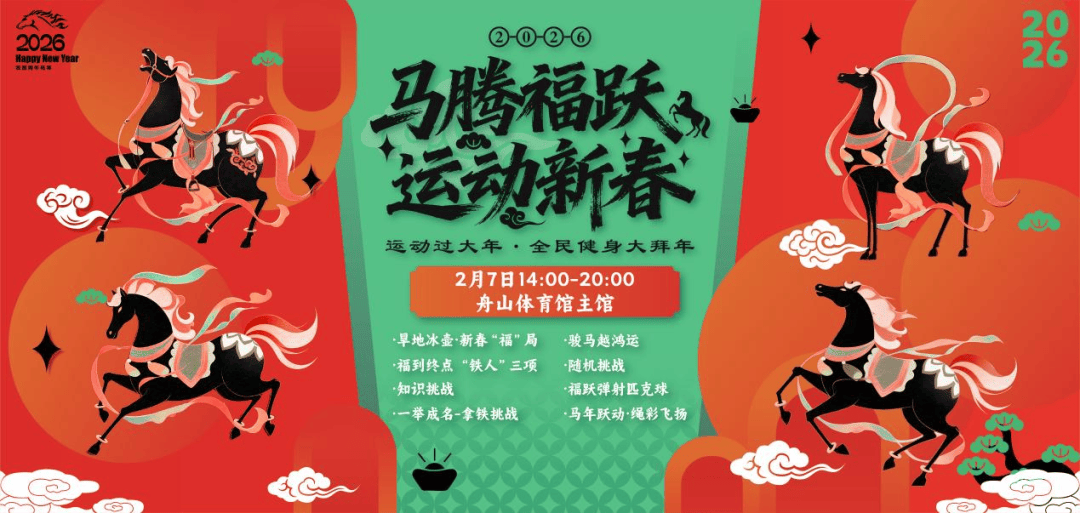 旱地冰壶·新春“福”局、福跃弹射匹克球、福到终点“铁人”三项、一举成名-拿铁挑战、骏马越鸿运、马年跃动·绳彩飞扬、知识挑战、随机挑战。
