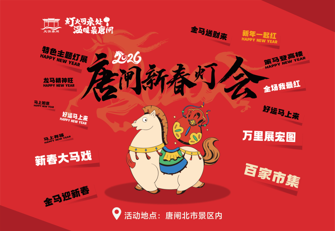 本次唐闸新春灯会以“灯火可亲处,温暖最唐闸”为主题,活动包含传统灯会展区、新春大马戏表演和百家市集,为游客提供丰富的节日体验。