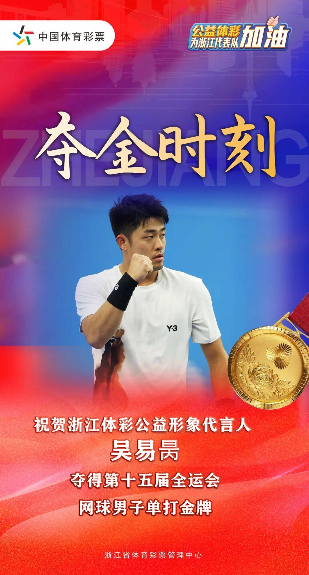 赛场上的奋力拼搏、赛场下的坚实保障,背后都有着来自浙江体彩的温暖支撑。而作为浙江体彩公益形象代言人的吴易昺和布云朝克特,也用他们的精彩表现传递着体彩公益精神。一直以来,体彩公益金作为体育事业支柱型的资金来源,为运动员备战参赛、训练器材采购、训练场馆建设等提供了大力支持,也为运动员训练备战提供了良好的训练环境。正是这份持续有力的支持,让浙江健儿们能够坚持不懈地向着梦想进发,在全运会、奥运会等大赛中不断突破、屡创佳绩。浙江体彩也将继续支持我省体育事业发展,向社会传递公益体彩、责任体彩的形象。