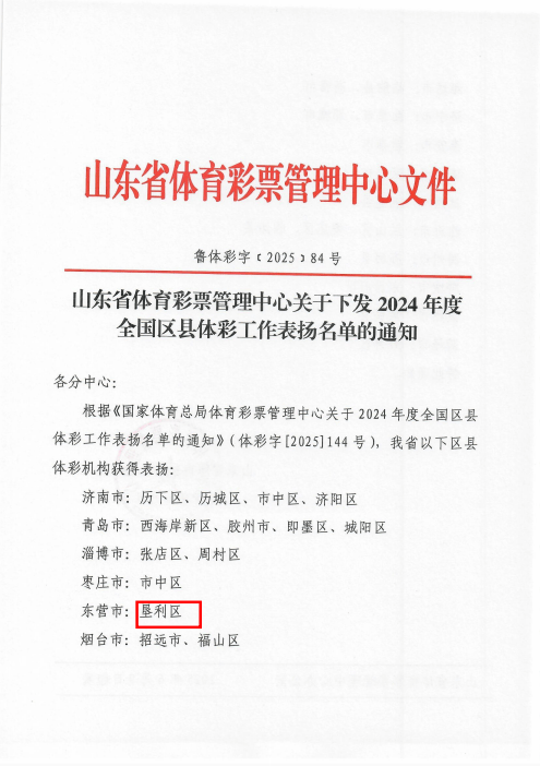 此次作为全市唯一获表扬单位,是对垦利区体彩工作的高度认可。2025年,垦利区教育局(体育局)将以此为新起点,持续深化精细管理,优化网点布局,强化服务创新,为推动体彩事业高质量发展、助力体育强区建设注入更强动能!